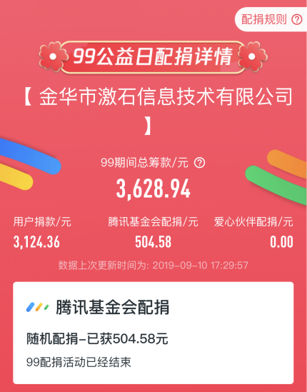9月9日該項目配捐的款項***達成,作為***家對該項目明確支持的企業,愛一起協會會長金巧花等協會理事成員及骨干一行,近日到公司表示感謝,金華激石總經理沙顯忠先生表示,在公益形式多樣的時代里,提倡并支持此類,做實事的公益項目,也認為愛心公益對企業及員工,都能帶來正面的影響,支持并會持續助力該項目的后續進行。