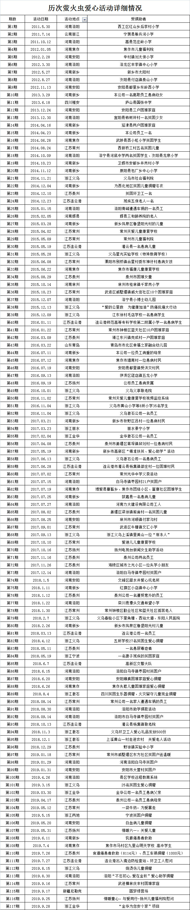 以下為歷次螢火蟲愛心公益活動明細: